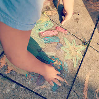 מזמינה אתכם הפעם לנסות לצייר בצבעי גיר ומים על המדרכה.